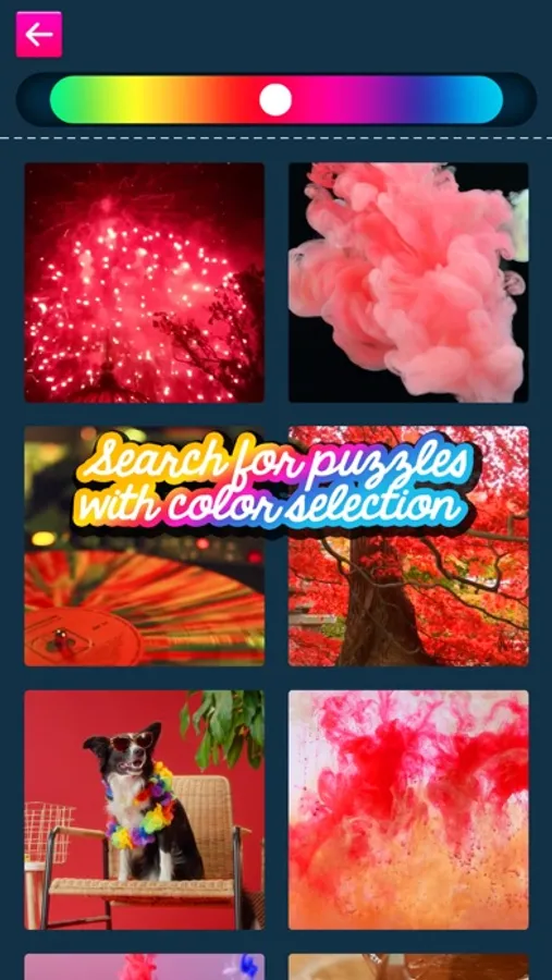 Simply drag the white dot at the top of the color bar and the 12 most corresponding puzzles will be displayed