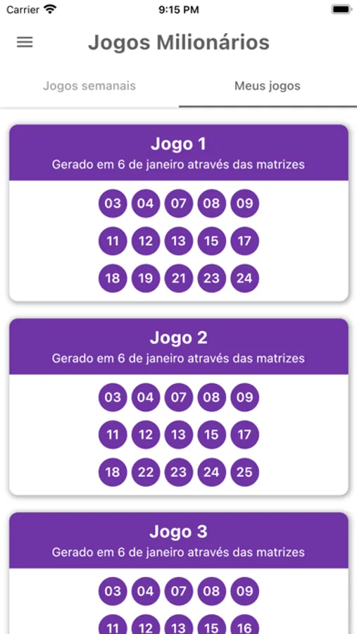 Receba seus jogos prontos aos domingos e participe de todos os sorteios semanais.