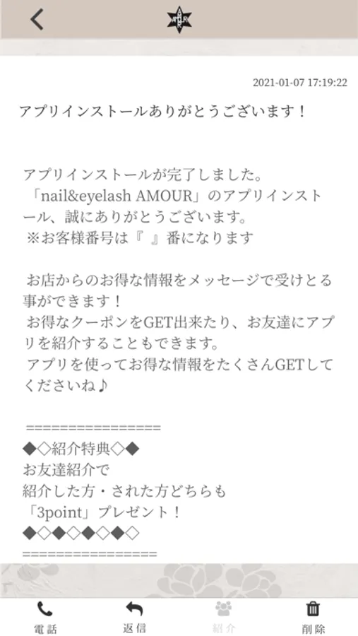 AMOUR公式アプリのアプリをSNSを通じてお友達に紹介する事ができます。