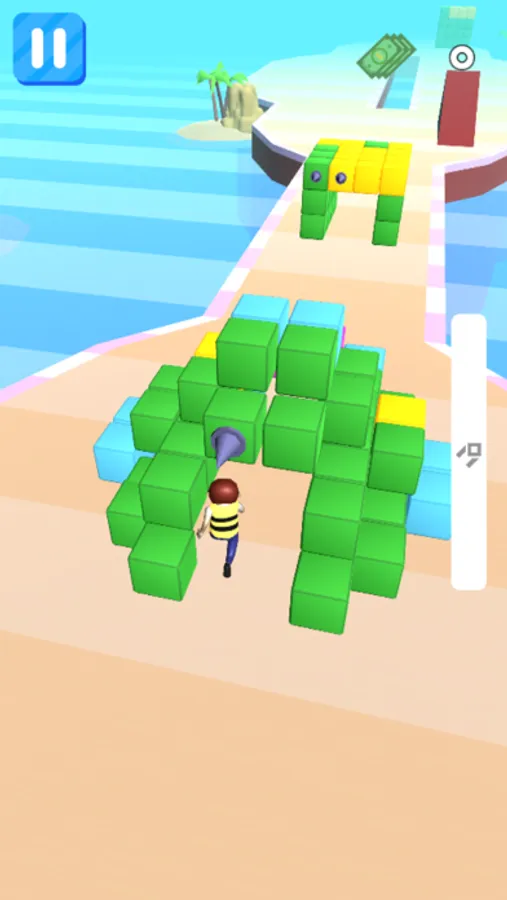 Come on! Run and Blast the Cubes. Find the gaps, enter from their entrance and Swell up your body! All Buildings will be exploded and you will get lots of points. Tens of different levels, funny arts and challenging platforms.