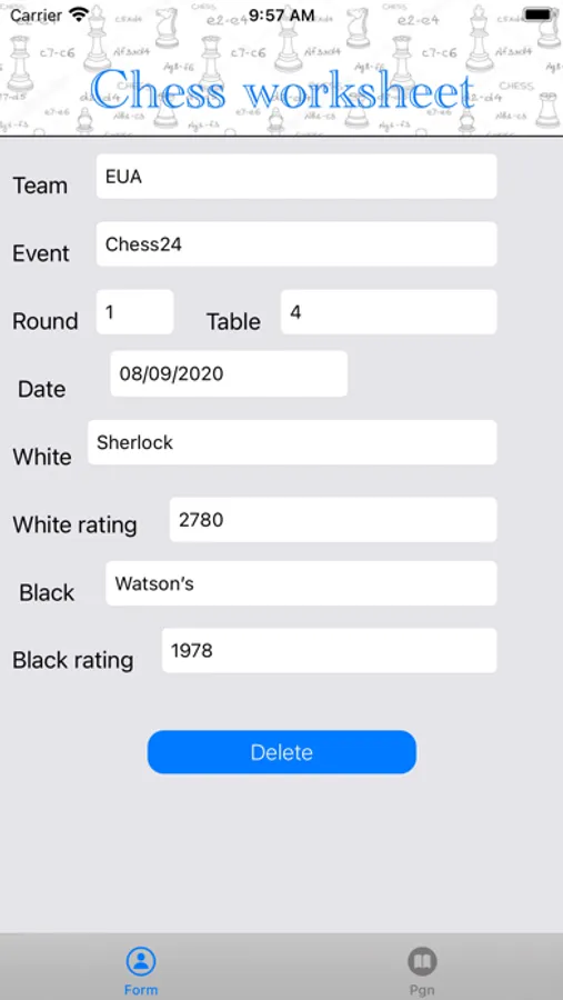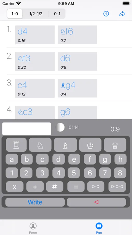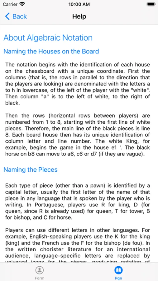 Very useful application, which uses the abbreviated algebraic annotation to make notes of the chess matches, replaces the paper sheet in tournaments, and has the advantage of converting the whole annotation into a "pgn" file with the record of the time spent in each move , sends the text pgn by email, the item can also be printed directly from the body of the email.