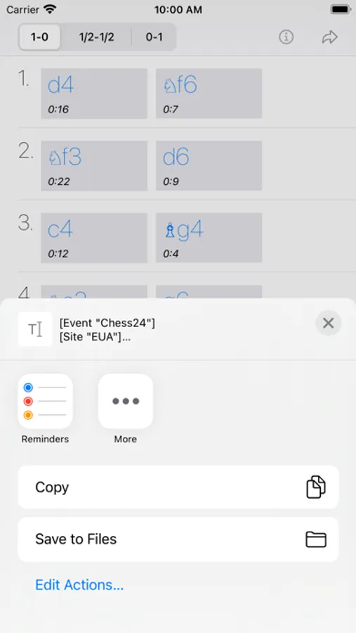 3. Sharing the game to other "pgn", StockFish and analysis engines directly from the device.