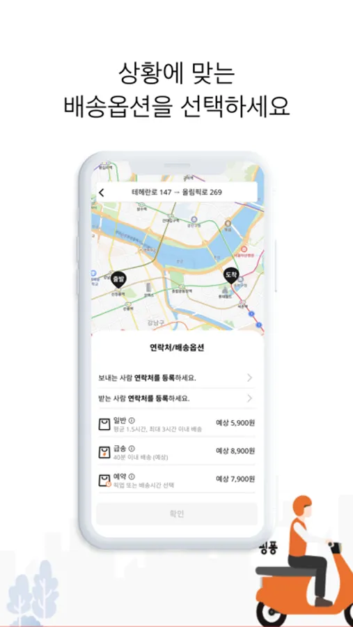- 일반 : 평균 1.5시간 이내 배송, 5,900원부터