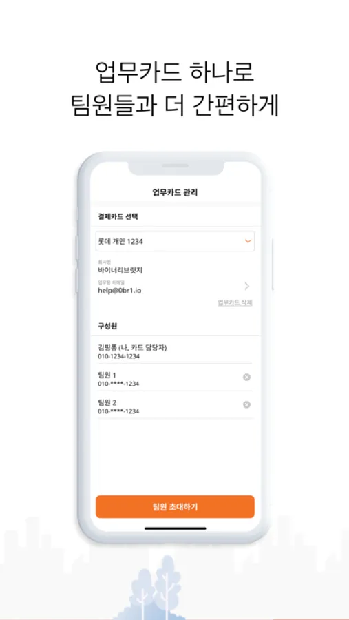 - 업무카드를 팀원과 공유하면 팀원은 별도의 결제수단 설정 없이 핑퐁을 이용할 수 있습니다.
