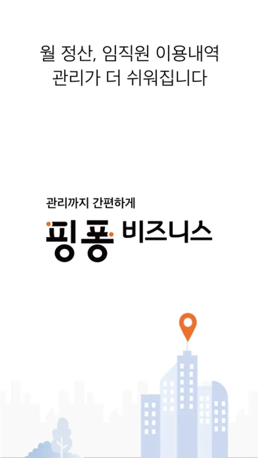 월 후불 결제 및 임직원 이용내역 관리가 편리한 법인전용 서비스입니다. 핑퐁 웹사이트( https://pingpongpingpong.com/biz )에서 기업회원 가입 후 바로 이용하실 수 있습니다.