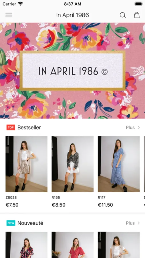 Grossiste en prêt à porter féminin, In April 1986 est une marque jeune et dynamique qui cherche sans cesse à s’améliorer. In April 1986 reçoit chaque semaine des nouveautés et réassorts pour pouvoir répondre aux besoins de ses clients.