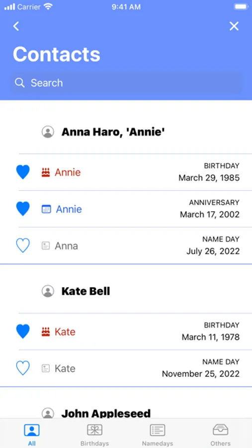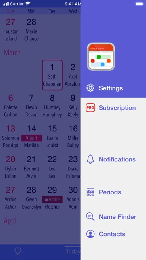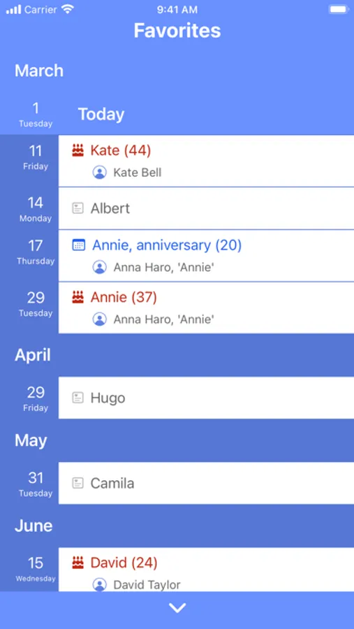 With PRO subscription: reminder for all favorites, birthdays, name days, anniversaries
