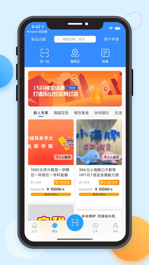以老百姓日常生活为目标,围绕衣食住行,做社区化生活场景。主要功能包括:房屋管理、社区生活、商业服务等。