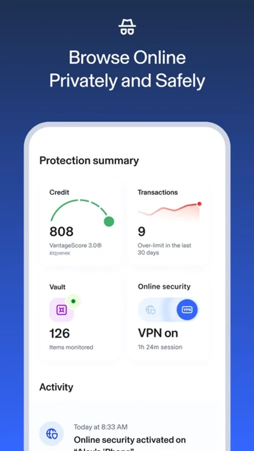 Instantly lock your credit to prevent thieves from opening credit cards or loans in your name. Keep track of your credit health by accessing your credit score and 3-B annual credit reports³. Aura delivers the fastest alerts2 so you get alerted to fraud in minutes, not days.