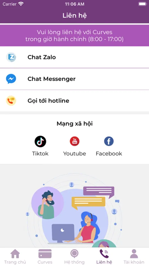 + Kết nối với Curves – hỗ trợ giải đáp mọi thắc mắc từ app và phản hồi từng câu lạc bộ.