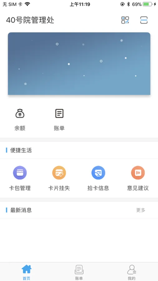 1.综合信息功能:卡包管理、虚拟卡、挂失解挂、扫码消费、权限查询、消息中心、建议等。