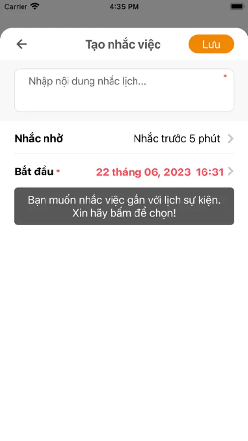 - Nhắc nhở tùy chỉnh cho Sự kiện