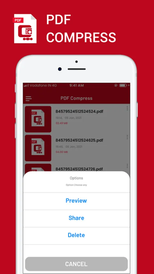 Features of Compress PDF Files Size: - Full size compression - Ultra fast processing power - Less Battery usage - Supports all other files also