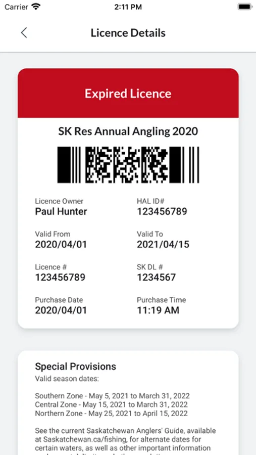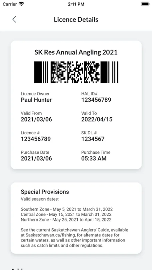 • Store and manage all Saskatchewan hunting and finishing licences in one convenient paperless location.