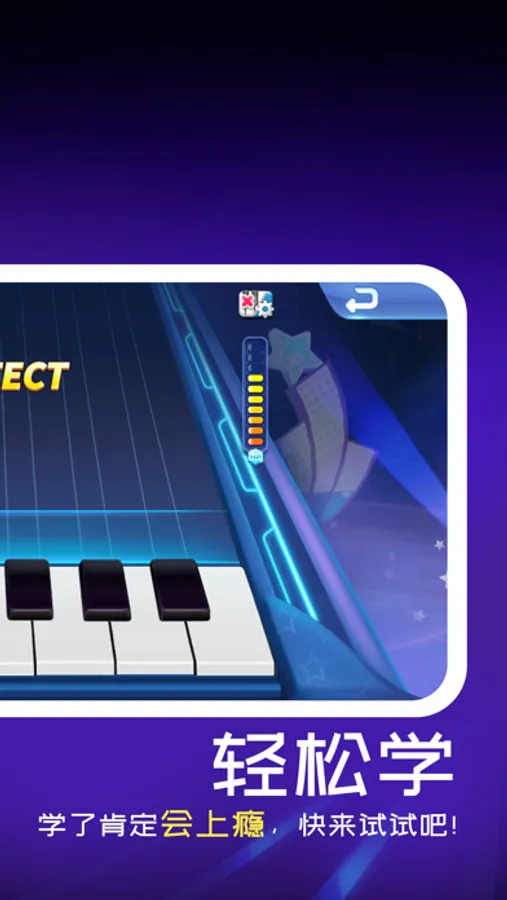 有趣多样的学习模式,画风清新场景梦幻,有琴没琴都能弹,无需任何钢琴背景知识要求,适合从儿童到成人所有年龄段的人使用,让你轻松上手,人人都能学会弹钢琴!