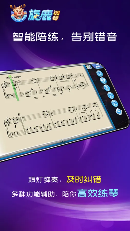 跟灯弹奏,及时纠错,多重功能让练琴更高效。测评功能还能对错音、不熟练等地方进行提示,给出相应的分数和指导。