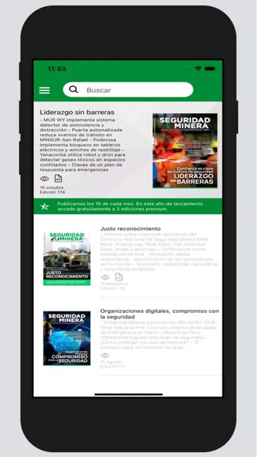 Encuentra las ediciones mensuales de Seguridad Minera, revista que el Instituto de Seguridad Minera-ISEM publica desde el año 1998. Contiene artículos técnicos e información sobre seguridad laboral, higiene industrial y salud ocupacional en la industria minero-metalúrgica. Incluye información de mejores prácticas, primicias en productos y servicios, reportajes de operaciones, estadísticas y eventos. Cuenta con un buscador inteligente y la creación de biblioteca según artículos de interés. También accede a ediciones premium con información técnica novedosa.