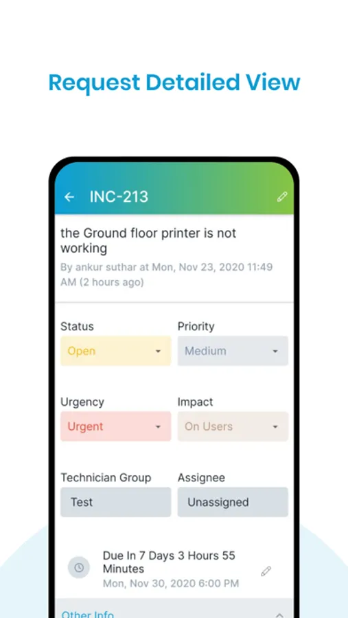 • Instant push notification to notify a ticket has been assigned to the Technician.