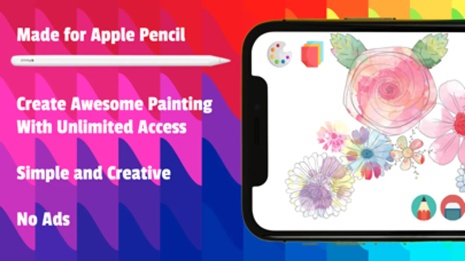 - Apple Pencil support: enjoy an easy and intuitive process of coloring on the crisp screen of iPad Pro also 3D touch for pressure-sensitive painting ************************************************