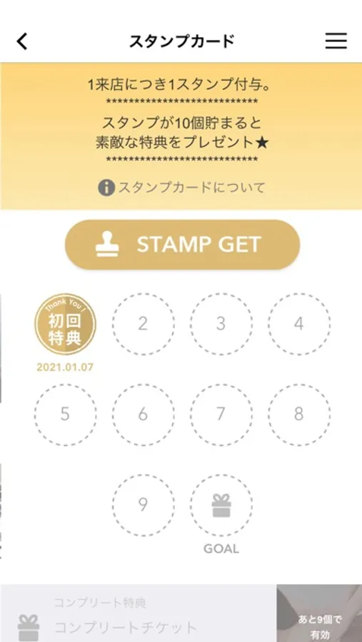 例:スタンプを貯めていただくとお得なクーポン等プレゼント!