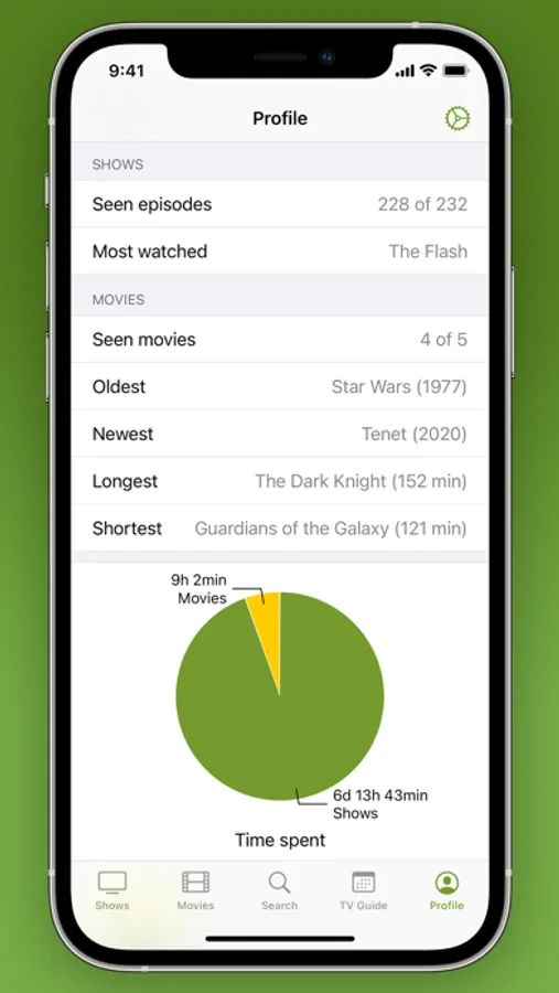 The statistics section contains interesting details about your favorite TV Shows and Movies.