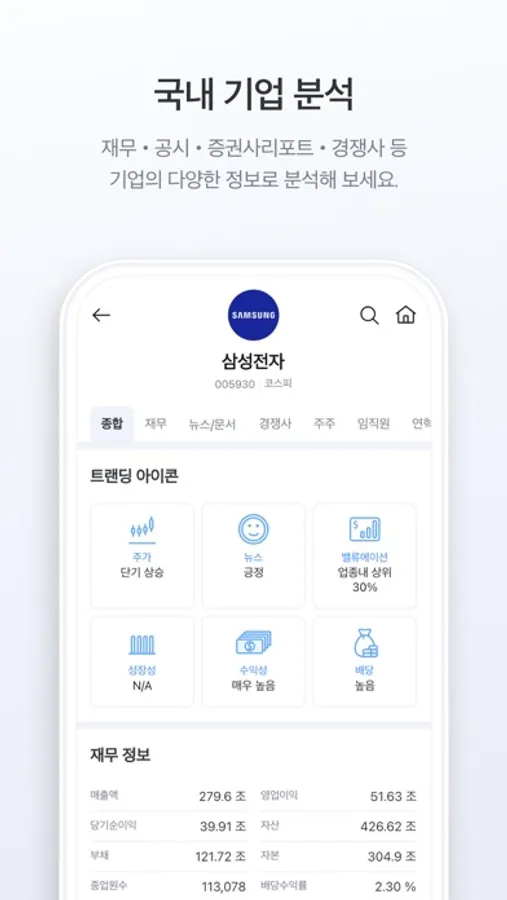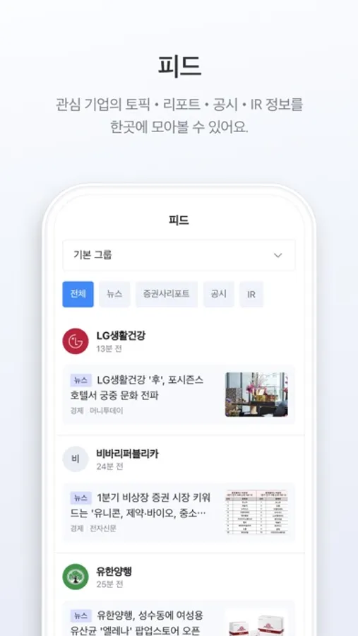 상장 기업 및 비상장 기업에 대한 정보와 뉴스 • 증권사 리포트 • 공시 • IR 자료까지 누구보다 빠르게 한 곳에서 확인하여 당신의 합리적인 비즈니스 의사결정을 도와줄 거예요.