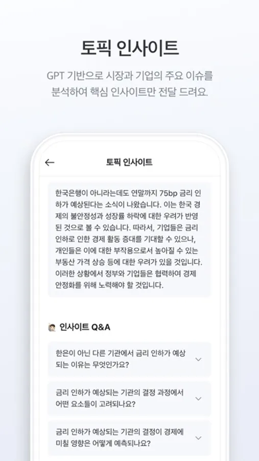 시장과 기업의 주요 이슈를 실시간으로 파악하고 분석하여 핵심 인사이트만 골라서 요약해 드려요.