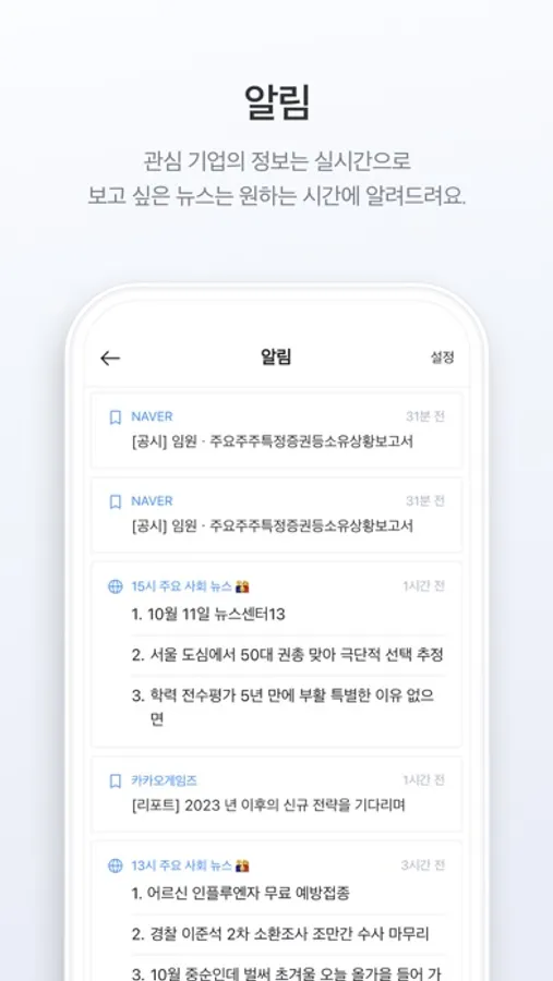 ● 관심 기업의 모든 정보를 바로 알려주는 알림