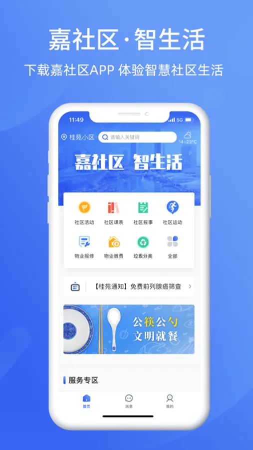 嘉社区App是定位于为嘉兴市居民提供各类社区相关服务的软件。