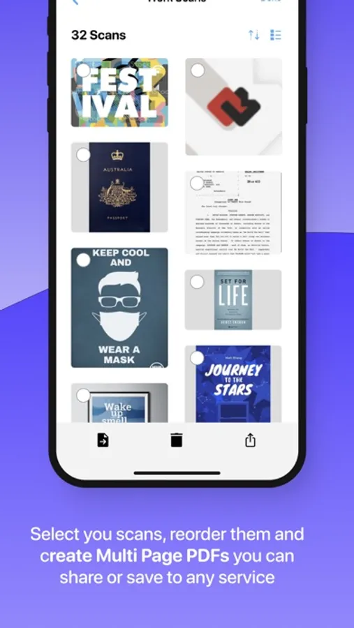 Scan and organize your work documents in structured folders. Scan single or multiple documents in one swift go. Merge scans into PDFs, reorder pages and share them on the fly.