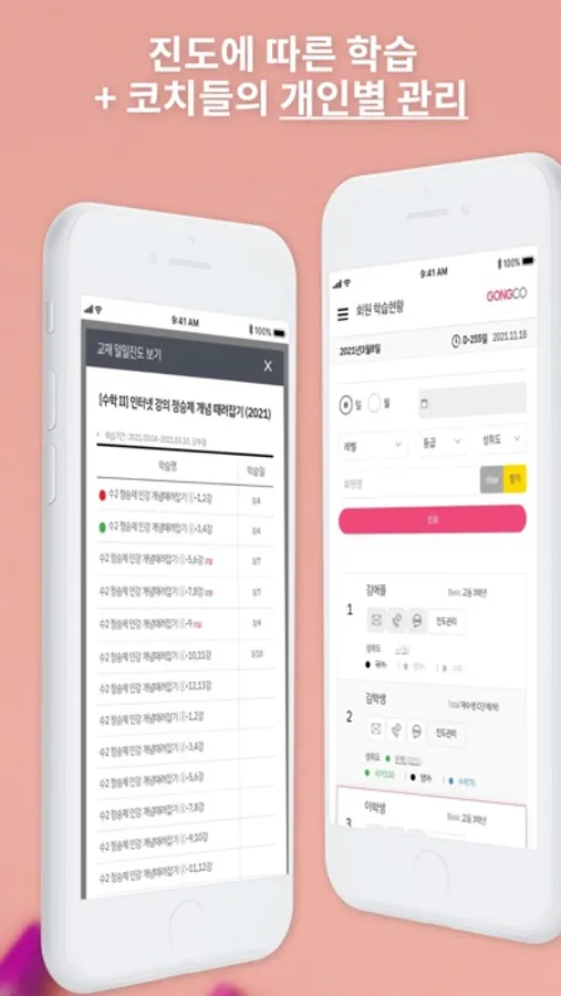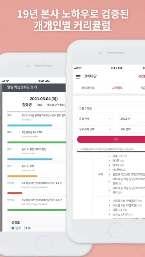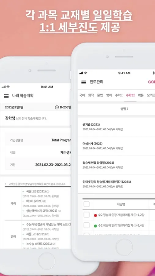 - 매일 진도대로 학습하고 과목별 코칭을 받을 수 있습니다.