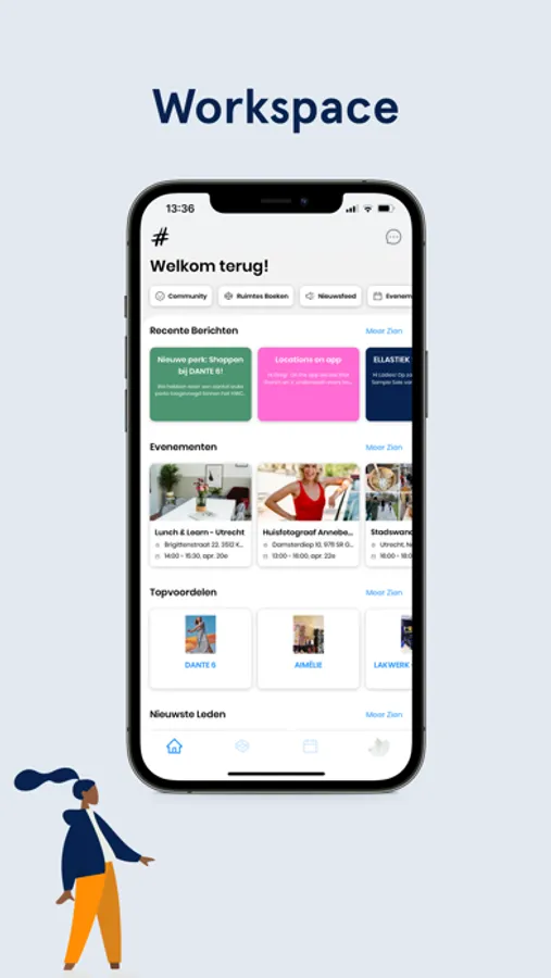 - Netwerken en chatten met andere Hashtag Workmode huurders