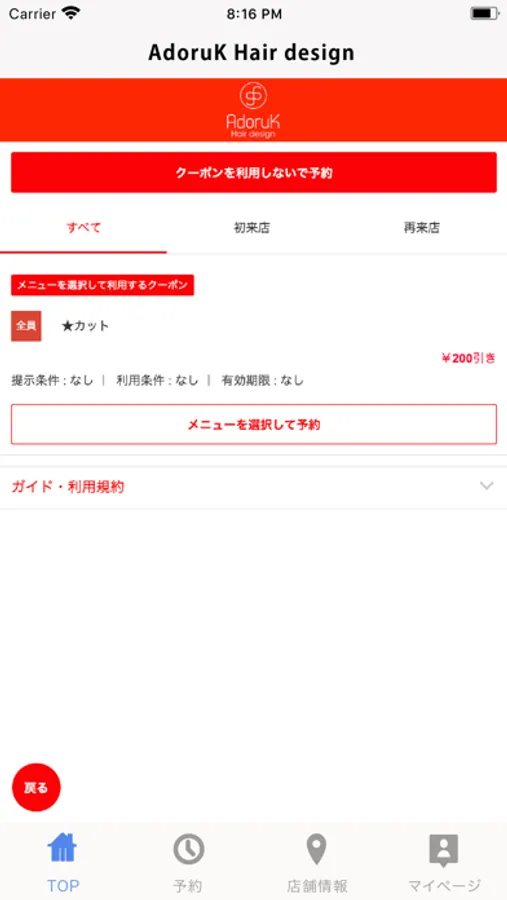 お得なクーポンが配信されます。ネット予約時にクーポン利用での予約も可能なので来店時もスムーズに施術頂けます。