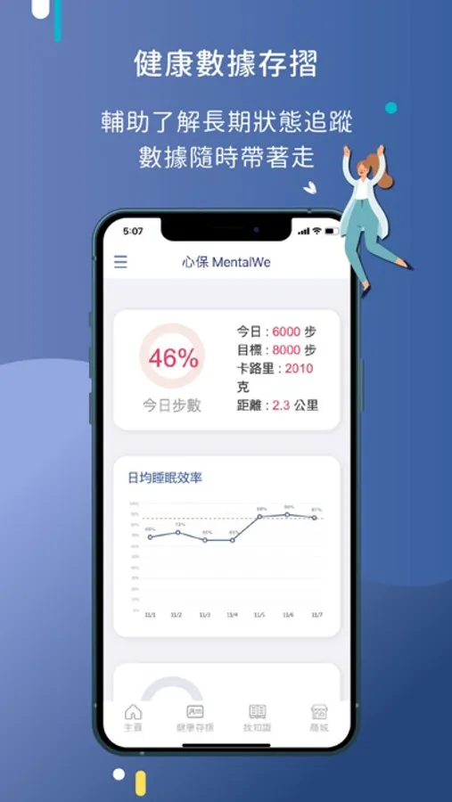 透過獨家的高信效度的智慧量表APP及智慧睡眠活動量腕錶,長期紀錄及擁有自己獨特的健康數據存摺,透過清楚明瞭的紀錄呈現,讓您更了解自己與家人健康狀態。