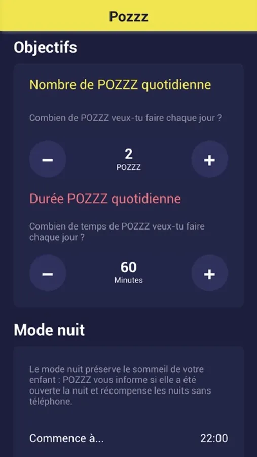 > L'accès parents permet de configurer les objectifs des membres de la famille et de garder un œil sur le respect des POZZZ de chacun.