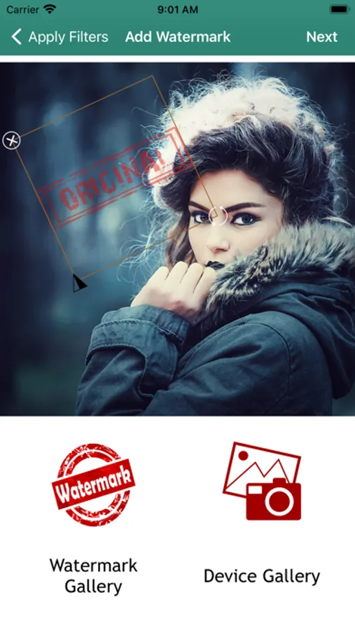 - Select the location in the image and the size of the watermark.