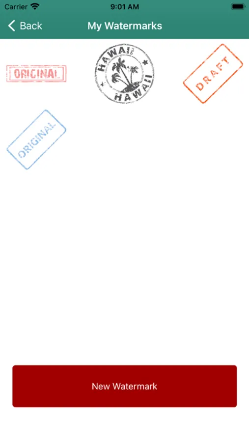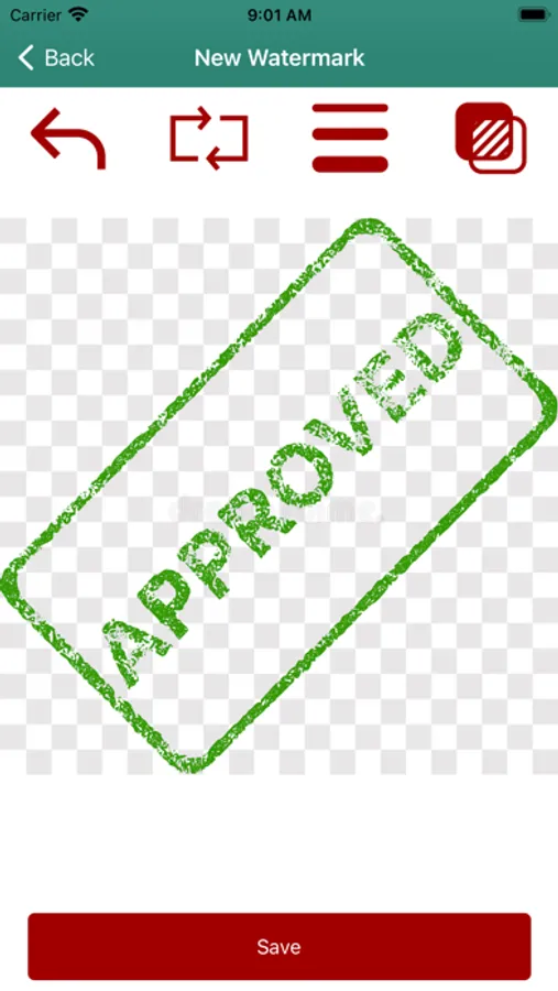 - Create your watermark with our custom editor or upload a watermark that you have created previously.