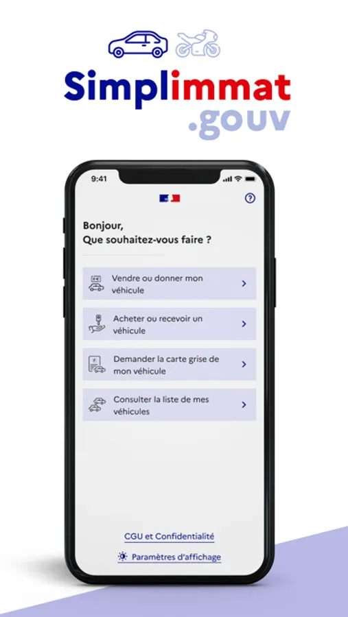 Simplimmat est l’application officielle de l’Etat pour simplifier les démarches administratives des particuliers qui revendent ou rachètent un véhicule d’occasion. Le vendeur et l’acheteur réalisent ensemble la déclaration de cession, la procédure est totalement sécurisée et dématérialisée (il n’est pas nécessaire de remplir un CERFA papier). L’acheteur peut commander sa nouvelle carte grise dans la foulée et obtenir immédiatement son certificat provisoire d’immatriculation.