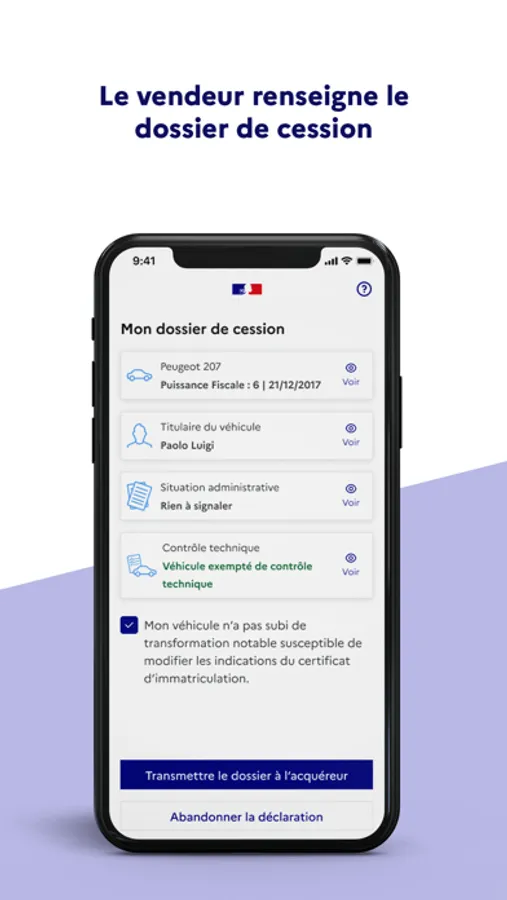 - Attendez que le vendeur vous partage le dossier de cession du véhicule
