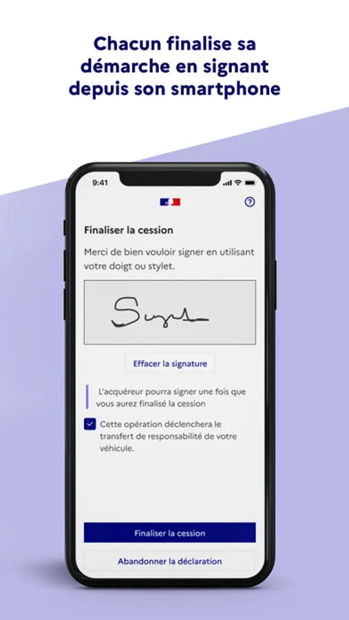 - Signez la cession sur l’application pour l’enregistrer