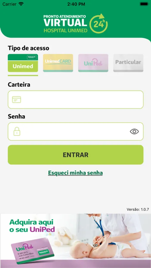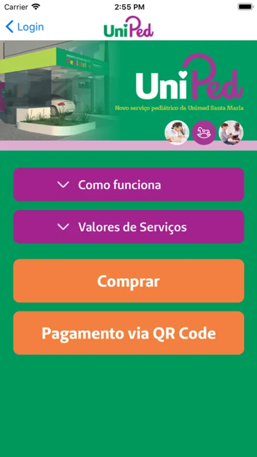 No aplicativo também é possível realizar a contratação de nosso novo produto pediátrico: o Uniped, pensado especialmente para as crianças, com acesso à estrutura e equipe do Hospital Unimed com valores diferenciados.