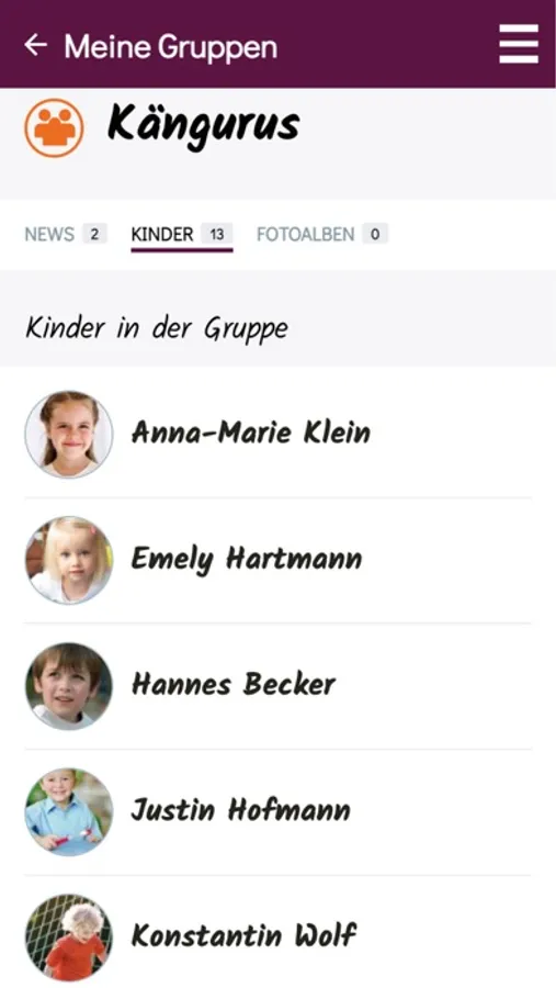 Die KigaRoo-App für Eltern erleichtert Ihnen die tägliche Kommunikation rund um die Betreuung Ihrer Kinder. Nutzen Sie jederzeit den Zugriff auf Nachrichten, den wöchentlichen Speiseplan, Fotoalben und Termine. So sind Sie stets auf dem Laufenden und haben auch unterwegs Einblick in den Tagesablauf Ihrer Kinder in Kita. Und das Beste daran: Die KigaRoo-App ist kostenlos und macht obendrein auch noch Spaß!