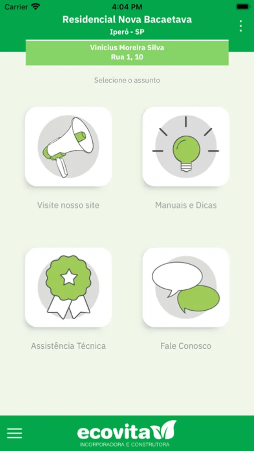 Tenha acesso a informações importantes sobre seu imóvel como fotos, manuais e projetos. Aqui você também encontra dicas que vão ajudar o dia a dia de quem já realizou o sonho de morar em uma casa Ecovita. Além disso, é possível abrir chamados na assistência técnica de forma independente e rápida.
