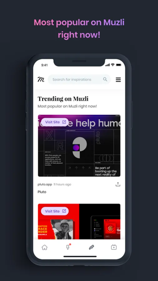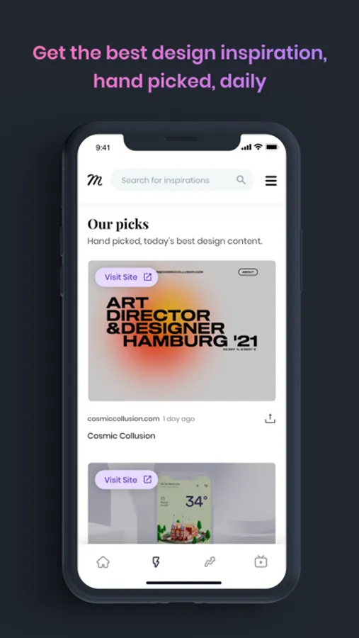 Mining leading web sources like Dribbble, Behance, Designspiration, ffffound, Mashable, Techcrunch and over 150 other, Muzli combines automated curation with human discovery, to uncover the best design inspiration and news that you won’t find with a web search. This endless source of ideas for designers and creative professionals will keep you in-the-know and constantly inspired. Start exploring!