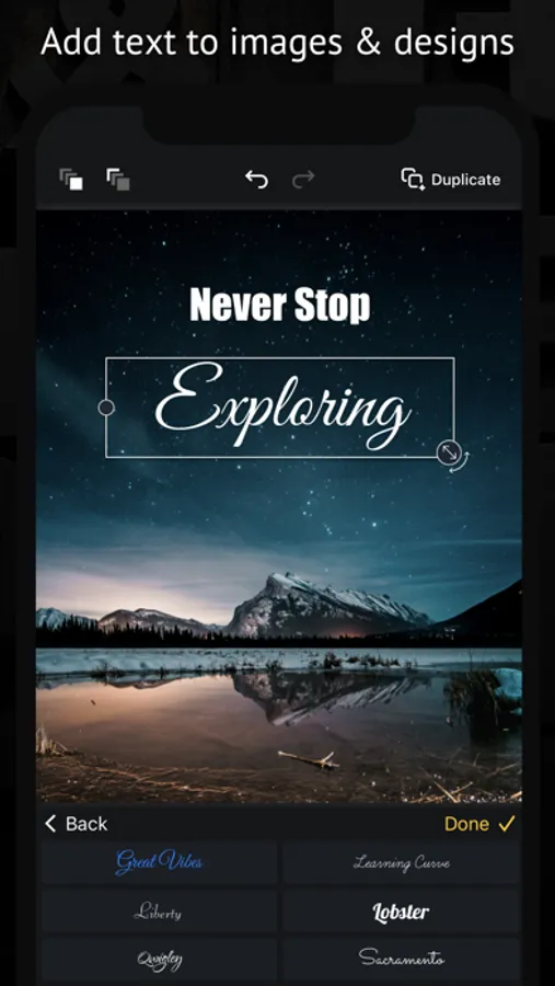 TypeSmith: Add Text to Photos. TypeSmith lets you design anything you can imagine. You can create stories and posts for Facebook and Instagram, edit photos, design collages, and make custom graphic designs. We have 1000's of fonts, stickers, borders, filters and free stock images. Most tools and content are free to use and no sign-up is required!