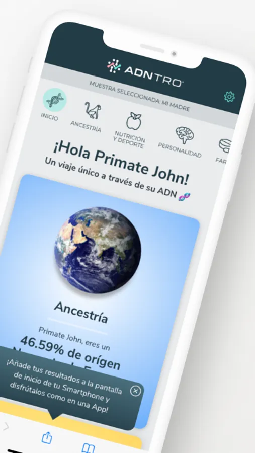 Test de ADN de Adntro a través de una muestra de saliva. Descubre lo que dice tu genética sobre tu ancestría, nutrición, farmacogenética, personalidad y salud