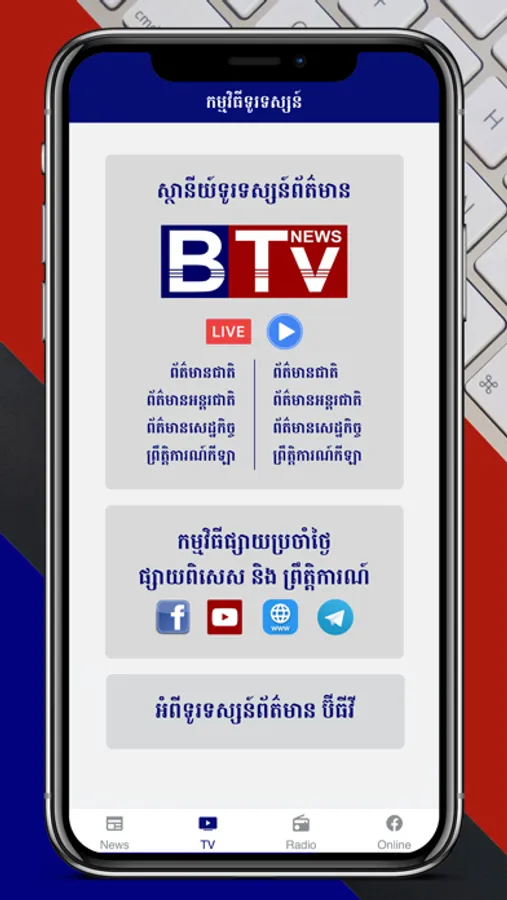 BTV channel, BTV News, BTV Cambodia, and BTV Television.