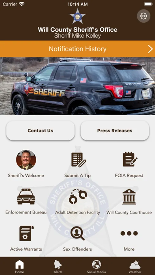 The Will County Illinois Sheriff’s Office mobile application is an interactive app developed to help improve communication with area residents. The Will County Sheriff App allows residents to connect with the Will County Sheriff’s Office by reporting crimes, submitting tips, and other interactive features, as well as providing the community the latest public safety news and information.