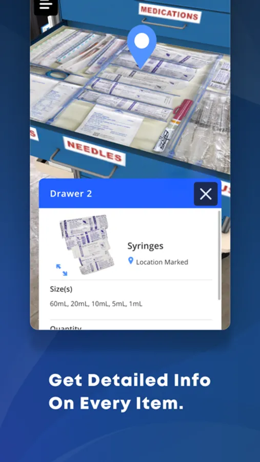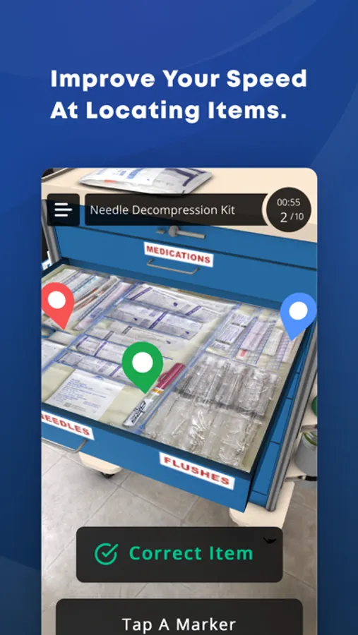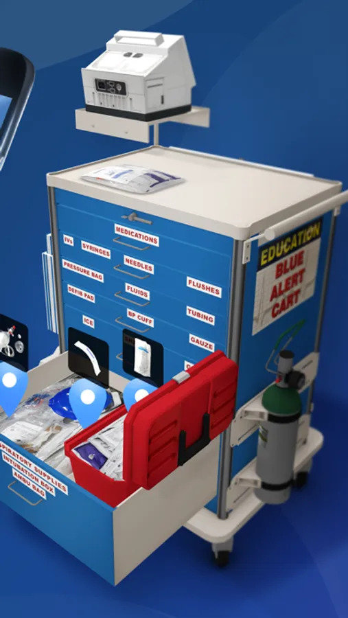With the immersion of augmented reality, users can explore realistically scaled and highly detailed versions of their local organization's medical carts. The Medical Cart AR app includes different modes that allow for a more relaxed experienced, or one that pits users against the clock to find items as quickly as possible.