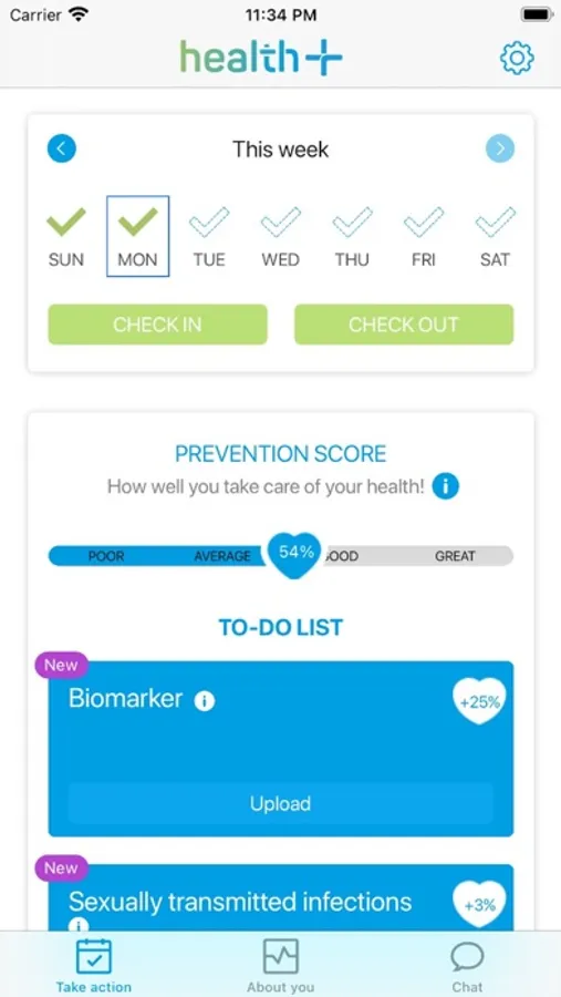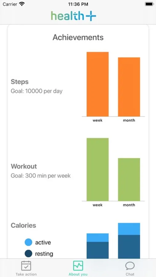 With health+ , you track nutrition, workout , sleep, stress, Biomarkers, Medical Exams along with your trusted healthcare professional , and receive daily insights to help you with decisions to better health !